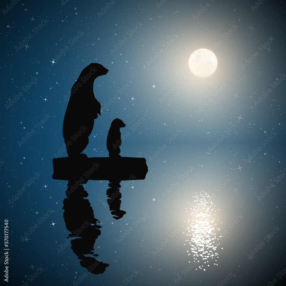 Sticker polar bears on ice floe. animal silhouettes. moon night in starry sky - Stickers Sticker polar bears on ice floe. animal silhouettes. moon night in starry sky - Stickers