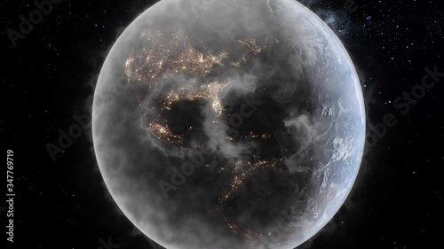 The watermark will not be included on Sticker.: Polluted earth concept with co2 appearing in the clouds of pollution surrounding the planet with man