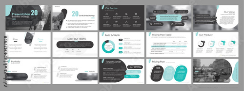 The watermark will not be included on Sticker.: Presentation template - green black elements for slide presentations on a white background - use also