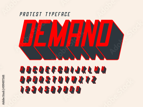 Sticker protest display font design, alphabet, character set, letters and numbers