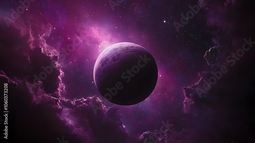 The watermark will not be included on Sticker.: Purple planet in space clean blank canvas with empty space for designs