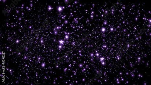 The watermark will not be included on Sticker.: Purple sparkles on black background 4k loop features sparkles and stars on a field of black with pur