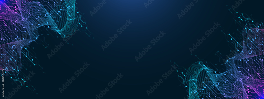 Sticker quantum computer technologies concept. futuristic blue circuit board background. modern technology c - Stickers Sticker quantum computer technologies concept. futuristic blue circuit board background. modern technology c - Stickers