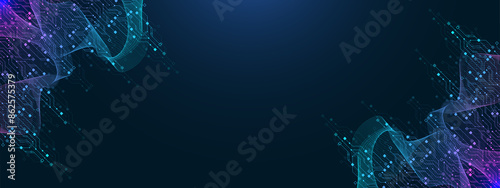 Sticker quantum computer technologies concept. futuristic blue circuit board background. modern technology c