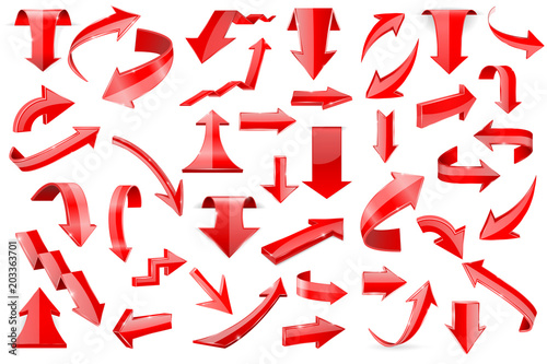 Red arrows - set of shiny 3d icons isolated on white backgroundSticker