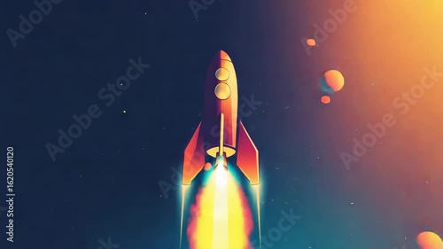 The watermark will not be included on Sticker.: Red rocket launching from planet with orange atmosphere in outer space