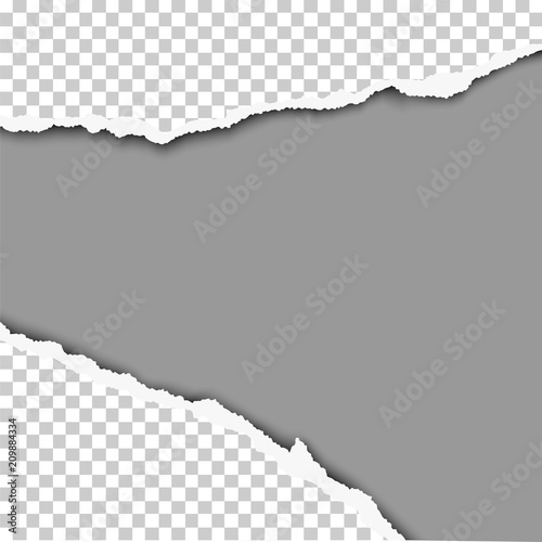 The watermark will not be included on Sticker.: Ripped wide hole in transparent sheet of paper with gray background of the resulting window - vector