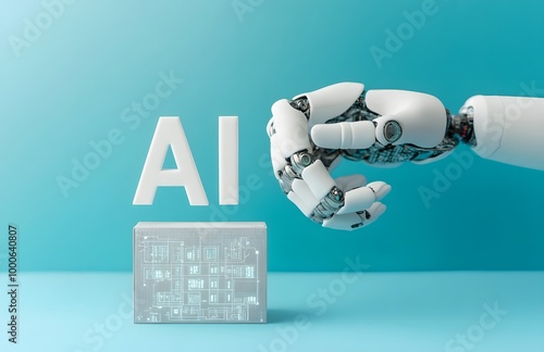 The watermark will not be included on Sticker.: Robot hand holding the word ai with an icon for artificial intelligence