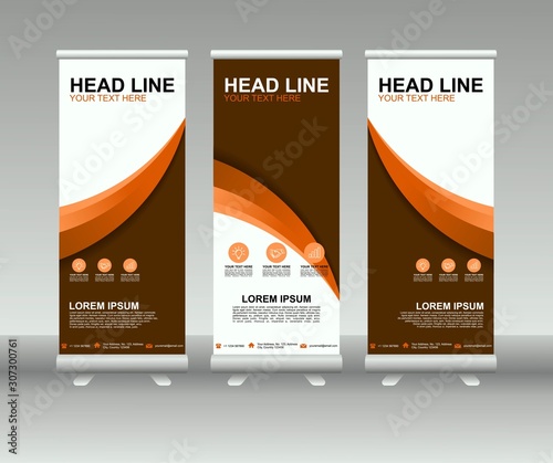 Sticker roll up banner stand. modern vertical flag banner template design with abstract background can be us