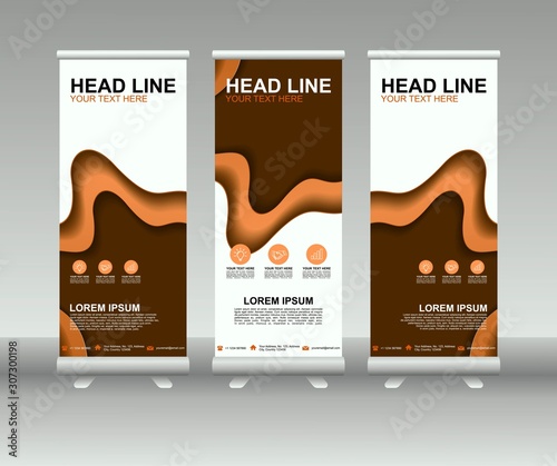 Sticker roll up banner stand. modern vertical flag banner template design with abstract background can be us