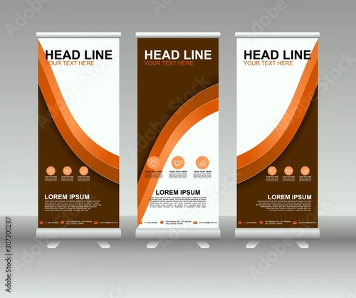 Sticker roll up banner stand. modern vertical flag banner template design with abstract background can be us