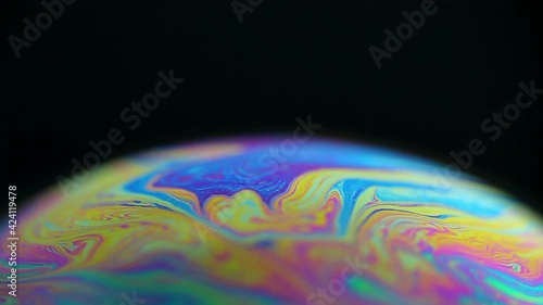 Sticker rotating colorful rainbow bubble on black background. abstract backdrop