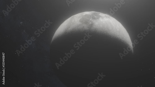 The watermark will not be included on Sticker.: Rotating moon shot as camera moves around with stars background - cgi animation 4k