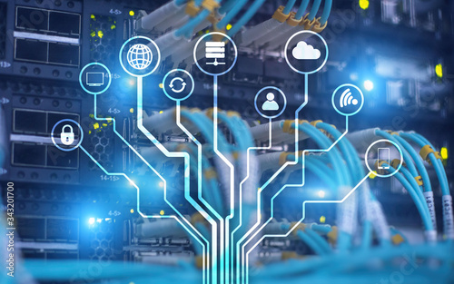 The watermark will not be included on Sticker.: Server room ict information communication technology wireless internet connection big data processin