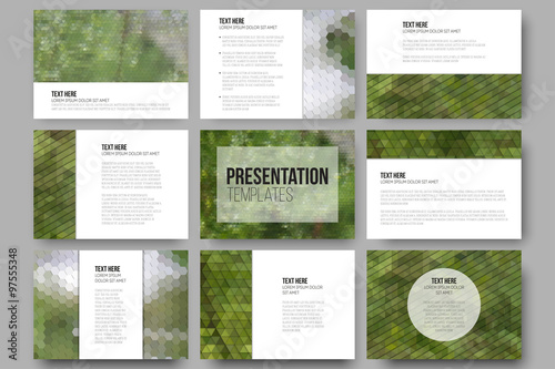 The watermark will not be included on Sticker.: Set of 9 templates for presentation slides - nature landscape - abstract multicolored backgrounds - nat
