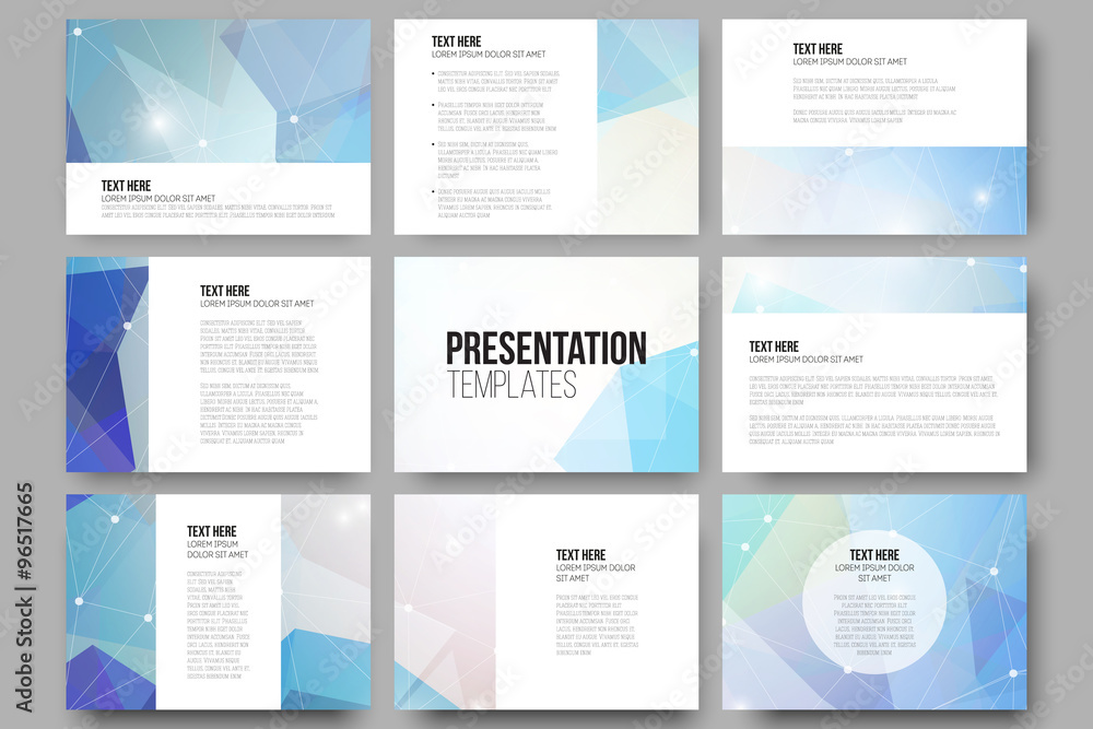 The watermark will not be included on Sticker.: Set of 9 vector templates for presentation slides - colorful graphic design, abstract background