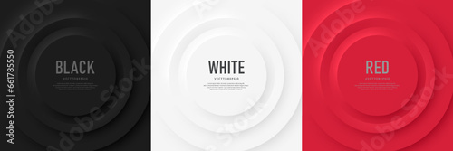 Sticker : Set of black, white and red 3d radial circle pattern with soft light and shadow in neumorphism style