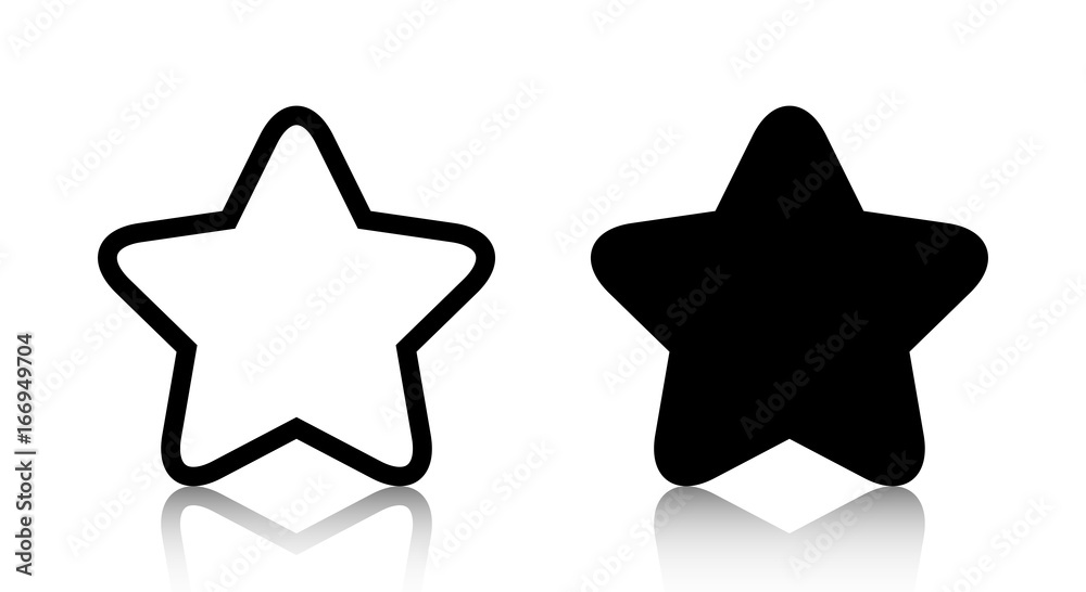 The watermark will not be included on Sticker.: Set of black star shapes with reflection isolated on white background - vector eps10