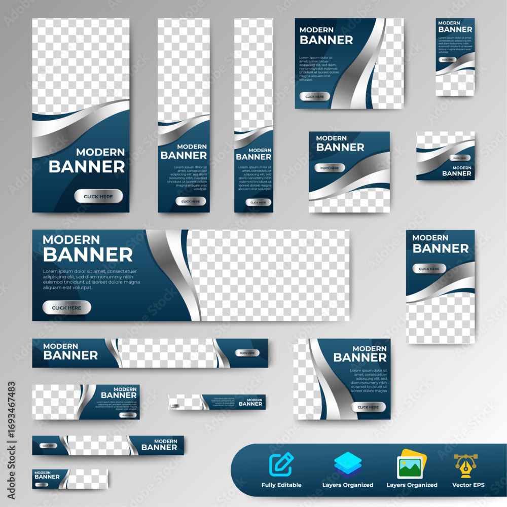 The watermark will not be included on Sticker.: Set of business banners template layout design - multipurpose banners bundle and editable - vector