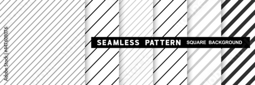 Sticker : Set of geometric seamless line patterns in square shape background, black and white monochrome color