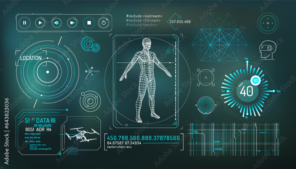 The watermark will not be included on Sticker.: Set of infographic elements about drone control and augmented reality -