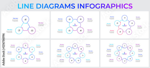 Sticker : Set of line infographic circles elements and arrows - vector cycle diagrams with 3, 4, 5, 6, 7 and 8