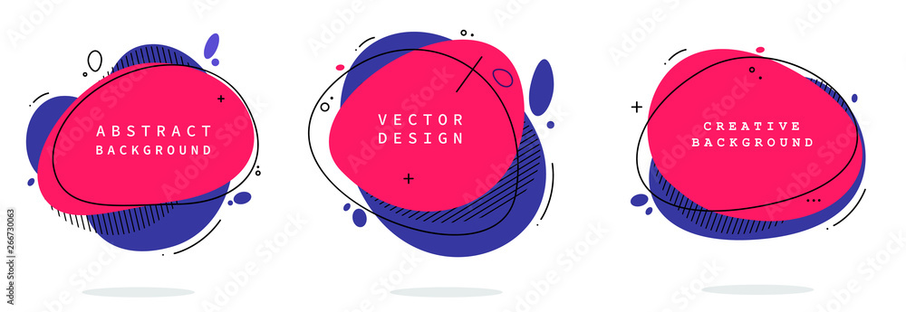 Sticker set of modern abstract vector banners. flat geometric shapes of different colors with black outline