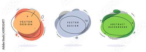 Sticker set of modern abstract vector banners. flat geometric shapes of different colors with black outline