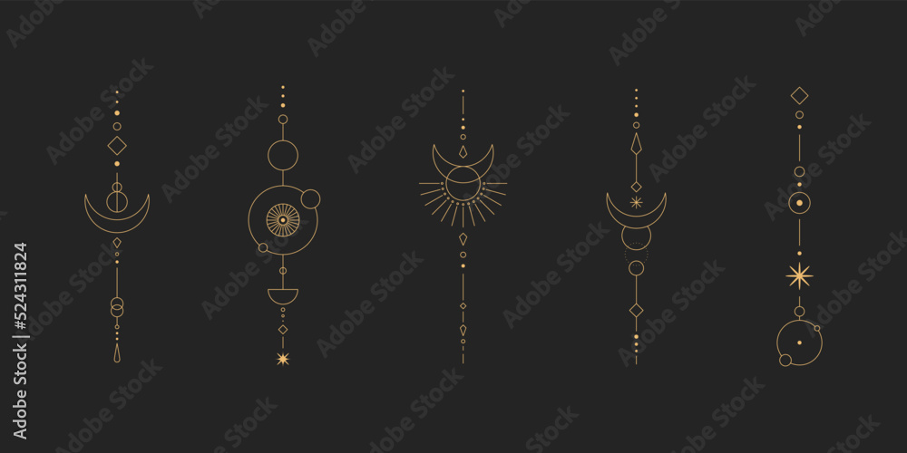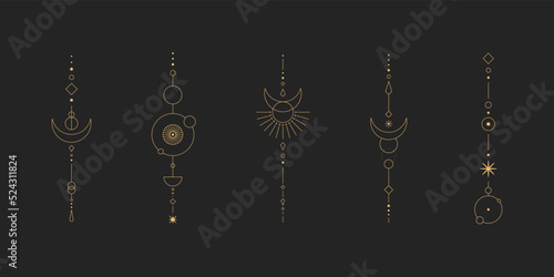 The watermark will not be included on Sticker.: Set of moon and sun line art - minimal boho linear symbols - celestial mystic element - vector line art