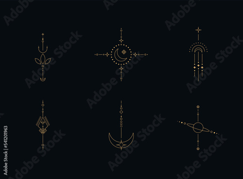 Sticker set of moon and sun line art. minimal boho linear symbols. celestial mystic element. vector line art - Stickers Sticker set of moon and sun line art. minimal boho linear symbols. celestial mystic element. vector line art - Stickers