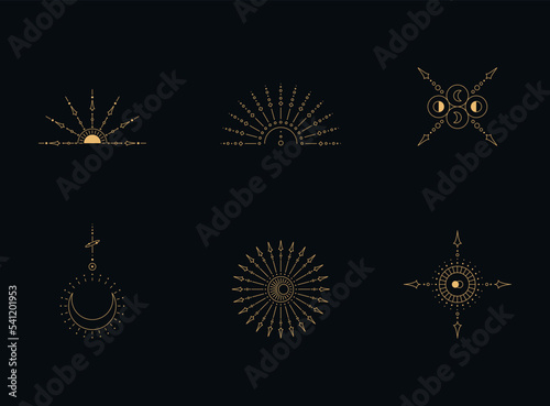 Sticker set of moon and sun line art. minimal boho linear symbols. celestial mystic element. vector line art - Stickers Sticker set of moon and sun line art. minimal boho linear symbols. celestial mystic element. vector line art - Stickers