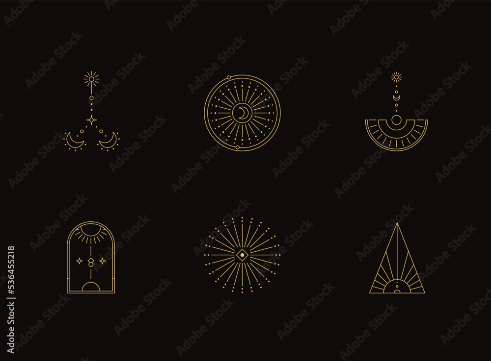 Sticker set of moon and sun line art. minimal boho linear symbols. celestial mystic element. vector line art - Stickers Sticker set of moon and sun line art. minimal boho linear symbols. celestial mystic element. vector line art - Stickers