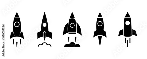 Set of rocket vector icons - launch spaceship or spacecraft - rocket fast flying for space - new busineSticker