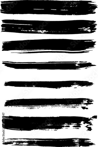 Sticker : Set of textured grunge black brush strokes - the black brush strokes create a dynamic and bold visual