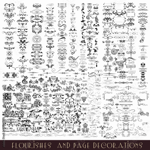 The watermark will not be included on Sticker.: Set of vector calligraphic elements and page decorations
