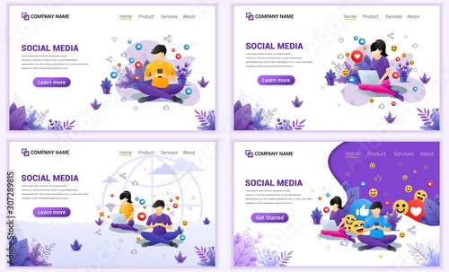 Set of web page design templates for social media concept - can use for web banner, poster, infographSticker