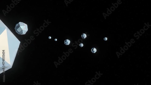 The watermark will not be included on Sticker.: Shimmering geometric island shapes pulsating and receding in an infinite dark space, a seamless loop