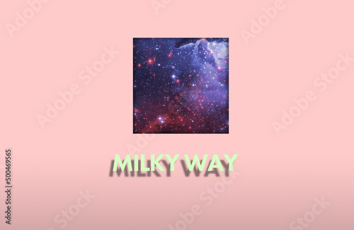 Sticker simple abstract milky way galaxy title text, stars in outer space. elements of this image furnished