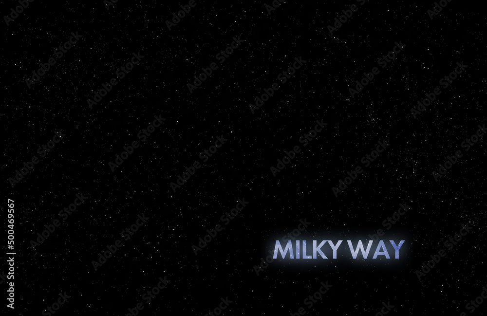 Sticker simple abstract milky way galaxy title text, stars in outer space. elements of this image furnished