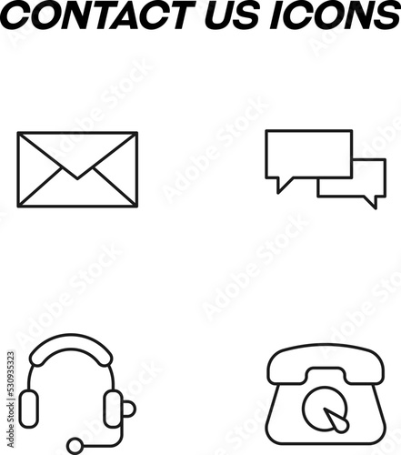 The watermark will not be included on Sticker.: Simple monochrome signs drawn with black thin line - vector line icon set with symbols of envelop, sp