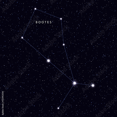 Sticker sky map with the name of the stars and constellations. astronomical symbol constellation bootes