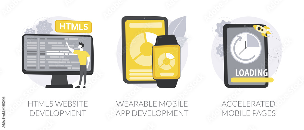 The watermark will not be included on Sticker.: Software and frontend development abstract concept vector illustration set - html5 website developmen