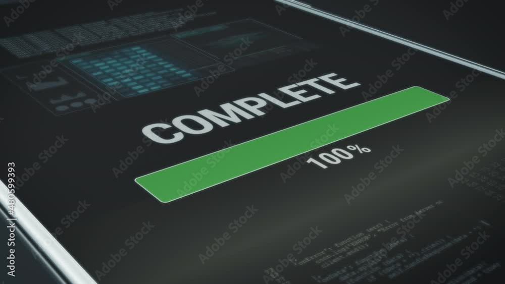 The watermark will not be included on Sticker.: Software update screen performed on modern hacker smartphone downloading progress internet and techn