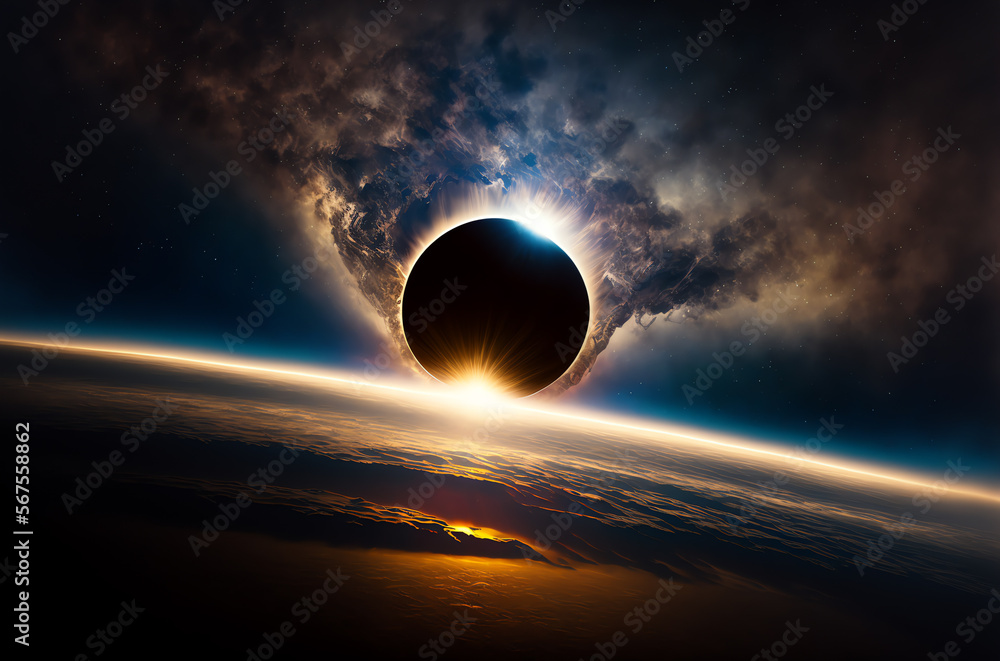 The watermark will not be included on Sticker.: Space and eclipse nebula background - ai generated -