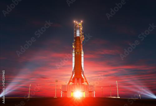 Sticker space launch system on launchpad over background of sunrise - Stickers Sticker space launch system on launchpad over background of sunrise - Stickers