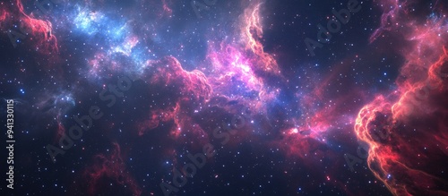 Space scene in a panoramic 3d cartoon rendering featuring stars a nebula and a galaxy in the universSticker