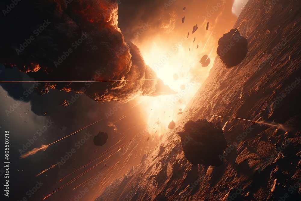 The watermark will not be included on Sticker.: Space war human and alien in outer space for star colony - distinct generative ai image -