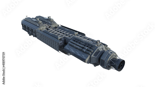 Sticker : Spaceship, alien ufo spacecraft in flight isolated on white background, top view, 3d rendering