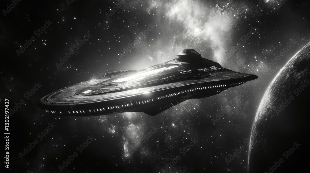 The watermark will not be included on Sticker.: Spaceship in space