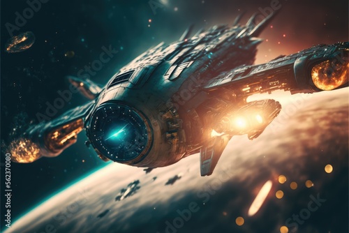 The watermark will not be included on Sticker.: Spaceship in space made with generative ai